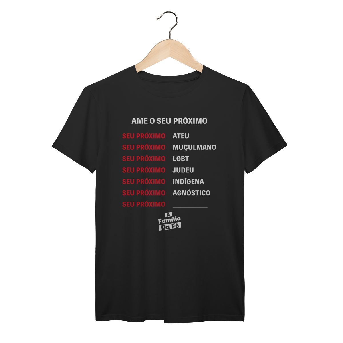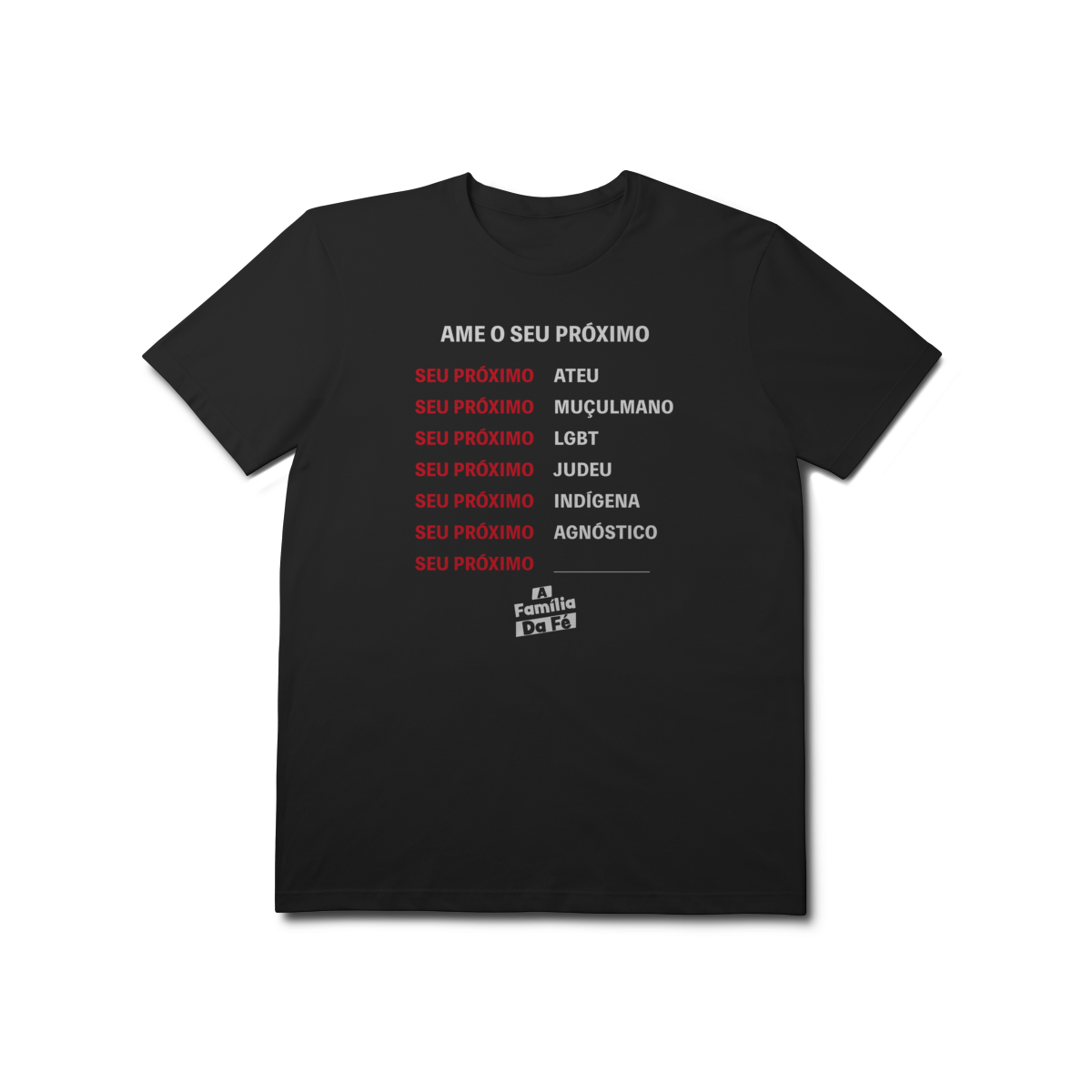 Camisa oficial do Filme A Família da fé, se você ama ao seu próximo independente de quem seja, essa camisa é pra você.